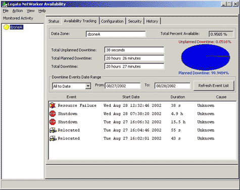 The Availability Tracking page is useful for trouble-shooting problems after you have been notified. Notifications come either after thresholds are crossed or when failures have occurred. Administrators will then use this screen, to look at: