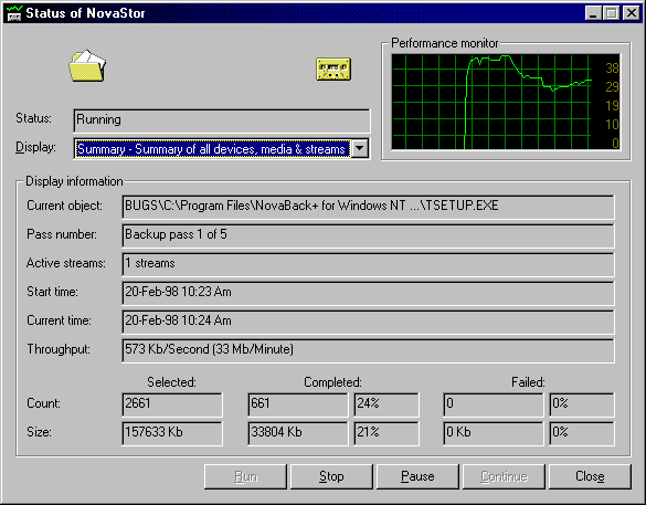 device fails or runs out of space in the middle of a backup session, NovaNET 8.5 will find the best