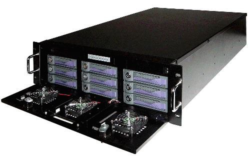 Cooling: 3 fans within door, 4 fans mid chassis, 2fans