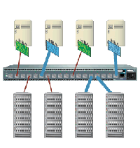 Connect 2Gb (blue HBAs) or 1Gb (green HBAs)