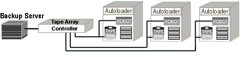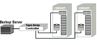 | One additional controller added to operate 2 drive sets, with 2 tape drives per set |